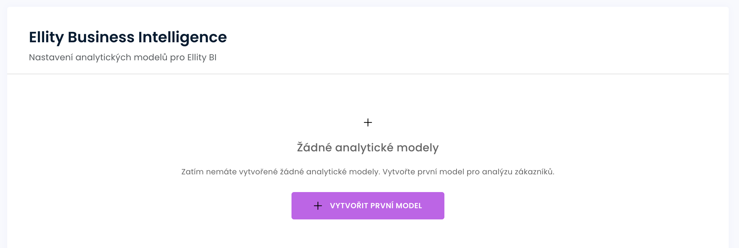 Pokud ještě žádný model nemáte, uvidíte prázdnou obrazovku s tlačítkem Vytvořit první model (viz obrázek „Vytvoření prvního analytického modelu“).