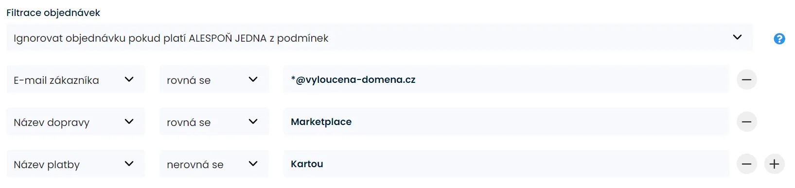 Filtrace objednávek slouží k vyloučení specifických objednávek ze systému. To je důležité jak pro nabíjení a čerpání na objednávkách, tak také pro fakturaci, která se řídí počtem objednávek v měsíci.
