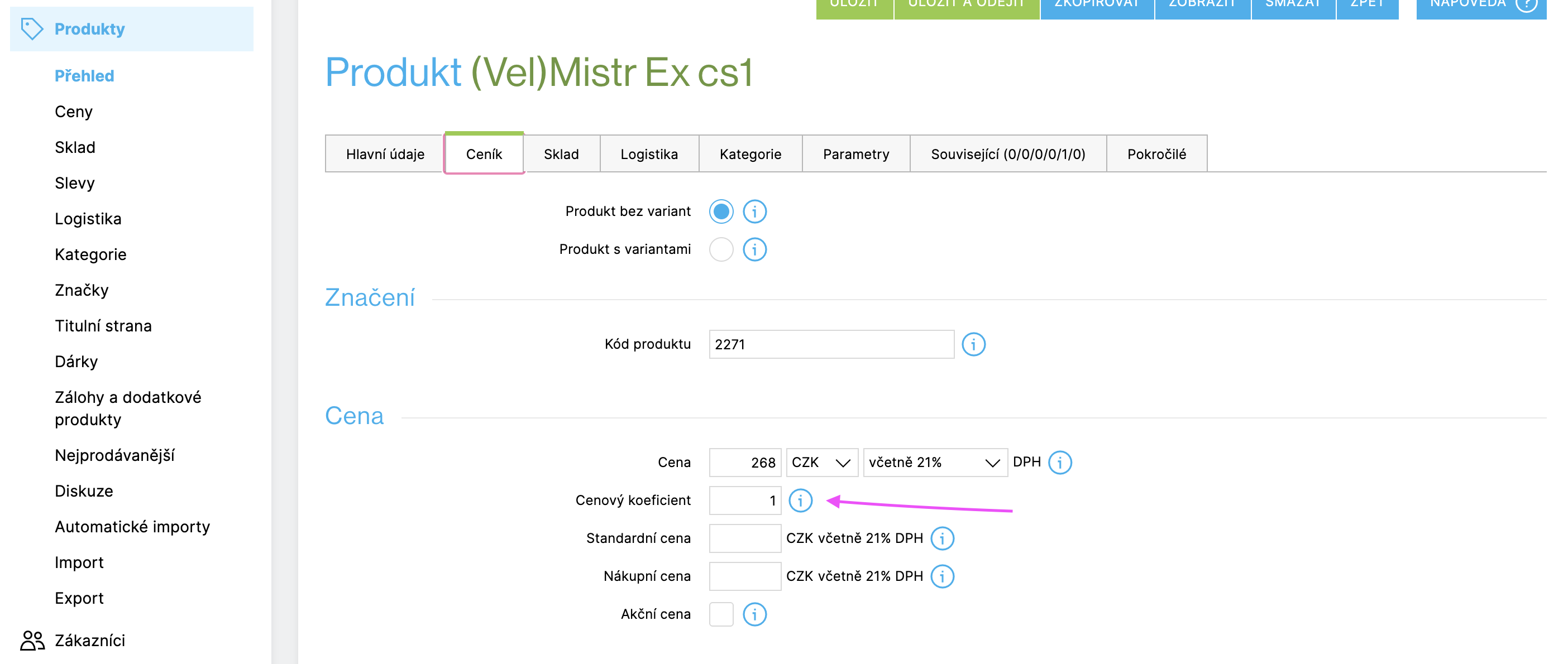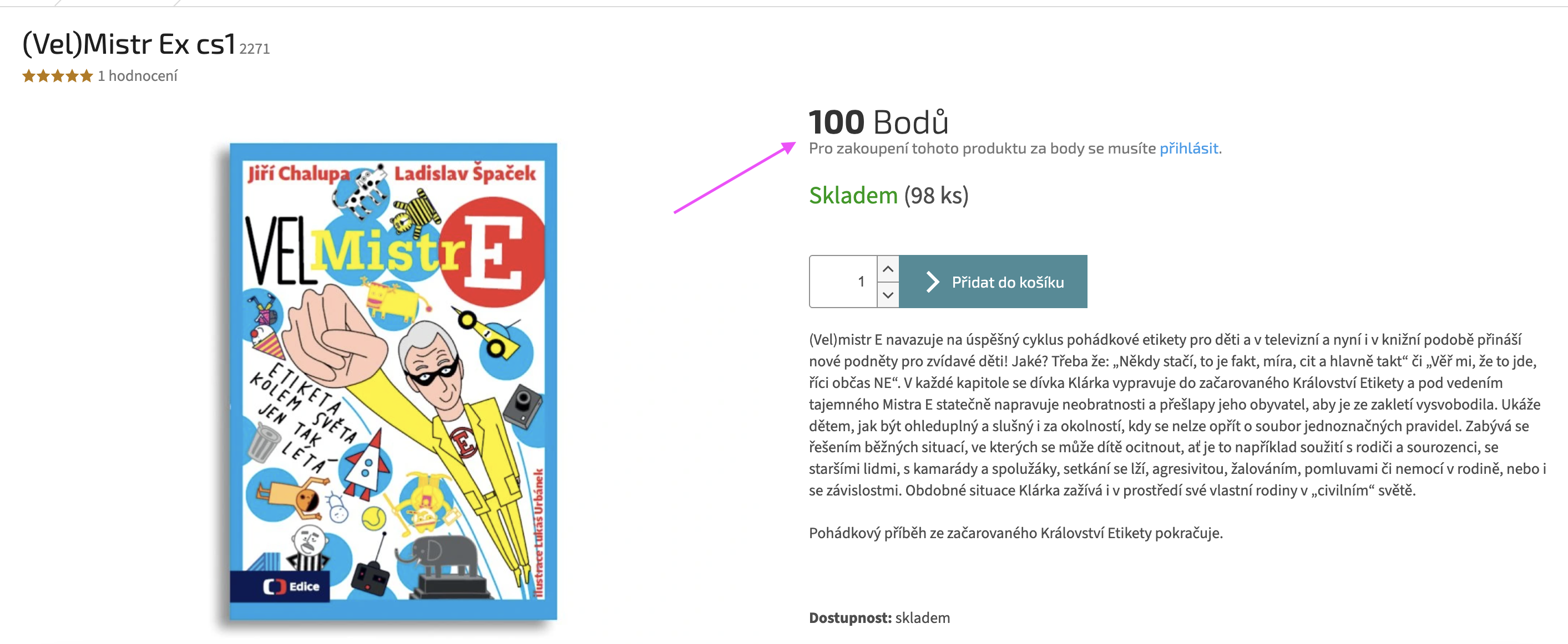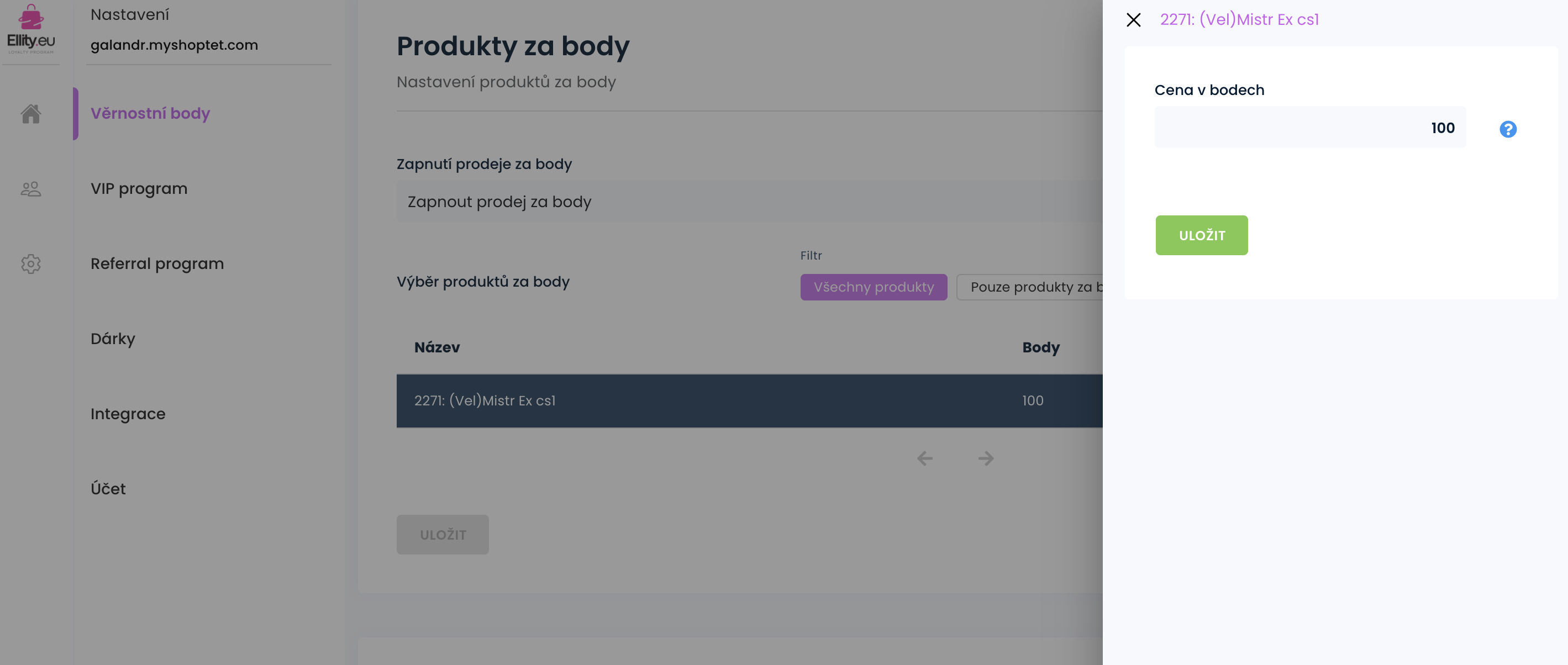 U produktů za body je důležité u Vás v Shoptet adminu jim nastavit cenový koeficient na 0 a poté v konzoli Ellity nastavit za kolik bodů bude možné si daný produkt zakoupit.