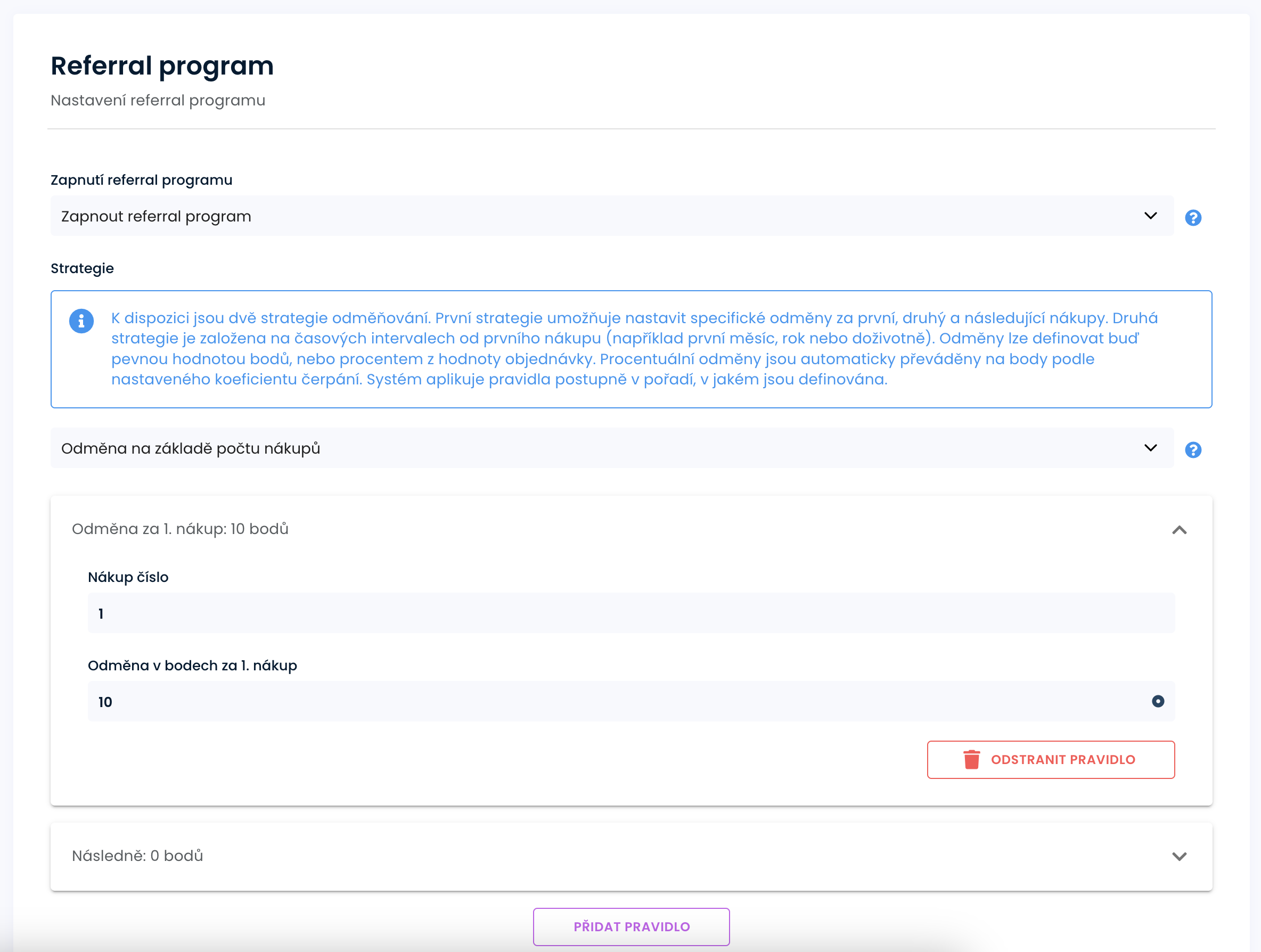 Zároveň mu zde říkáte, jakou odměnu získá za přivedení zákazníka a jakou odměnu bude mít přivedený zákazník.