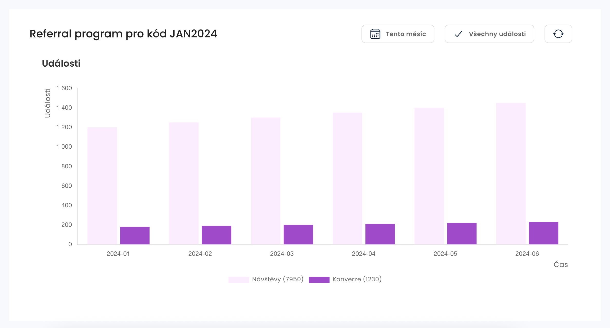 - Přehled návštěv a konverzí uskutečněných přes referral kód zákazníka
